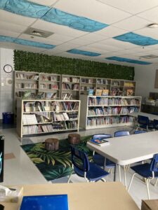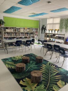 En octobre 2024, notre bibliothèque est déménagée au rez-de-chaussée pour faire place à un tout nouveau carrefour d’apprentissage. Dans une ambiance évoquant la nature, nos élèves pourront lire, travailler et apprendre. Ce lieu se veut un endroit motivant qui encourage la curiosité chez les élèves de tous âges.